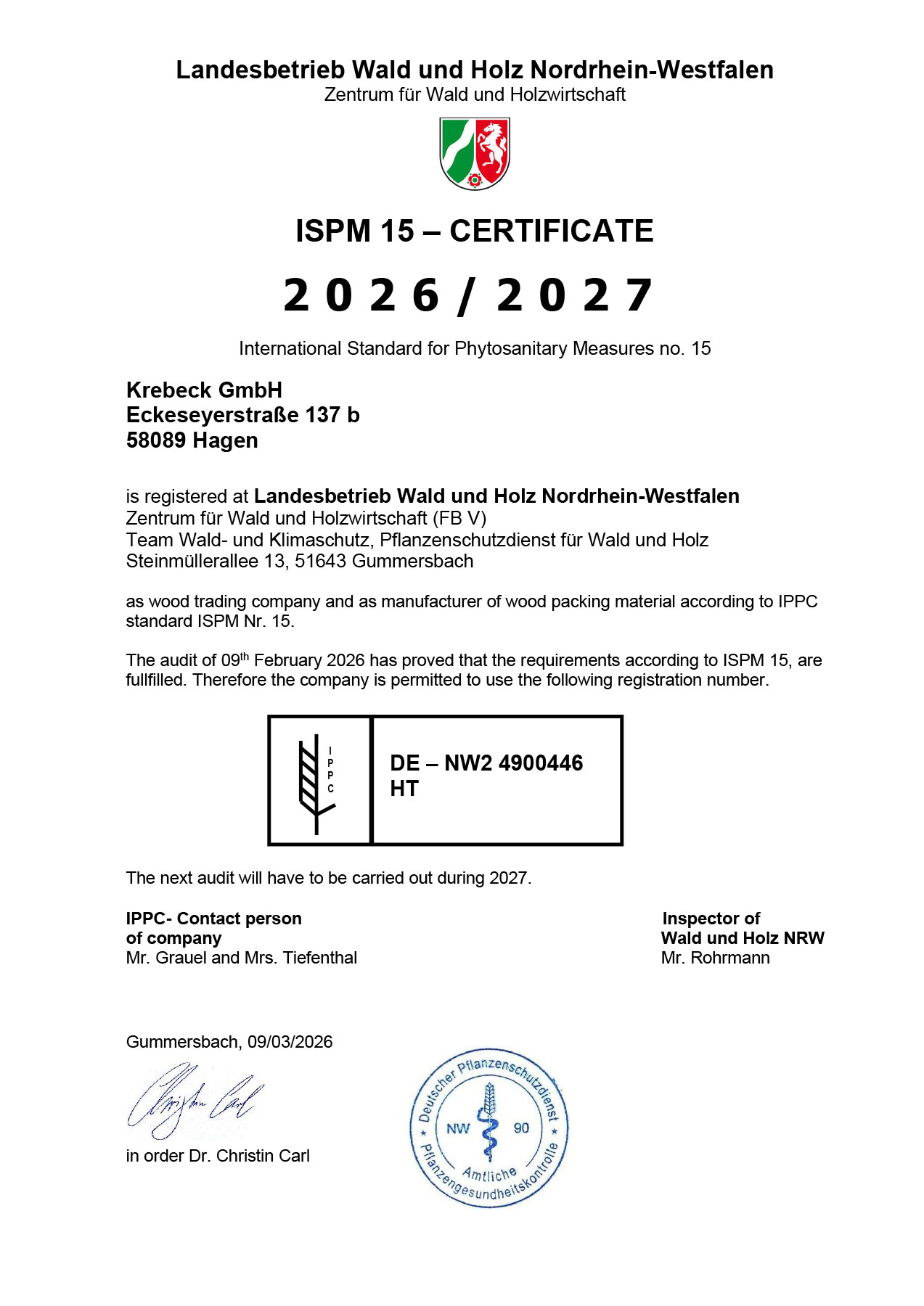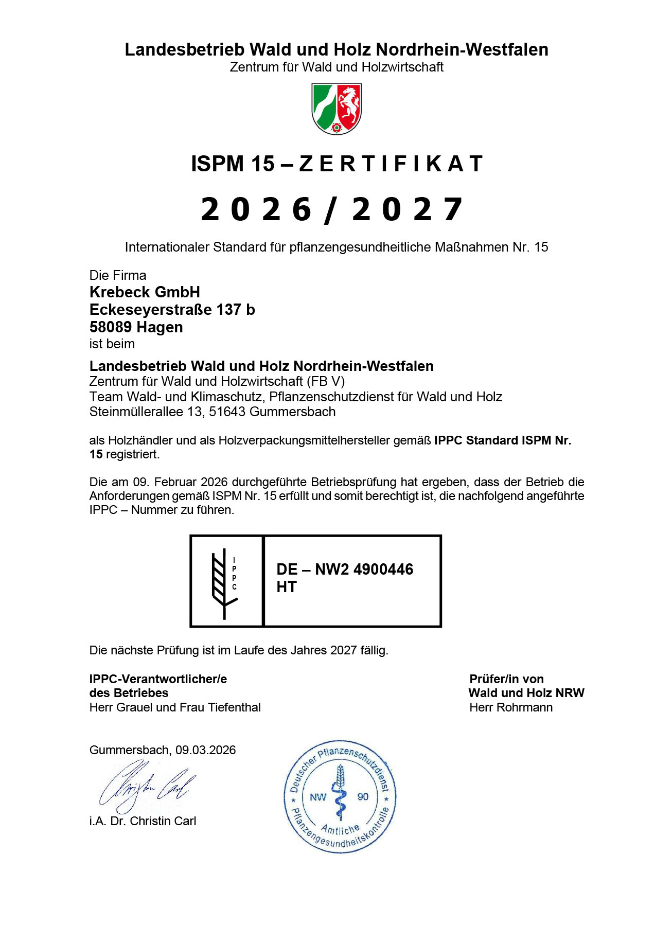 Das Unternehmen Krebeck wurde ursprünglich als Sägewerk in Hagen/Westfalen gegründet und entwickelte sich zu einem führenden und anerkannten Fachbetrieb für Holzverpackungen.